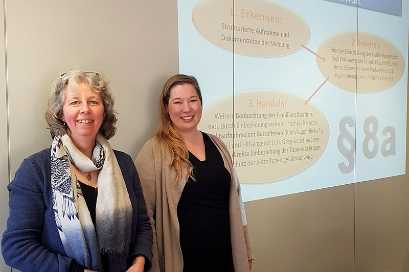 Lena Sauerland von der Frauenberatung Soest und Kerstin Werner vom Jugendamt Lippstadt haben über wirksamen Kinder- und Jugendschutz in Schulen informiert.