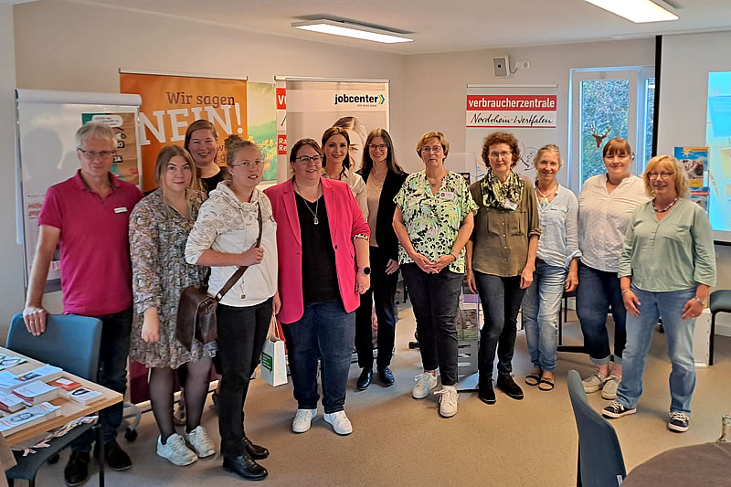 Neben dem Jobcenter und der Gleichstellungsbeauftragten der Stadt Warstein waren die Frauenberatung Soest, die Elterngeldstelle des Kreises Soest, die Verbraucherzentrale, eine Vertreterin des Sachgebiets Schule bei der Stadt Warstein für Fragen rund um die Ganztagsbetreuung an Schulen und eine Vertreterin der Gewerkschaft ver.di vor Ort.