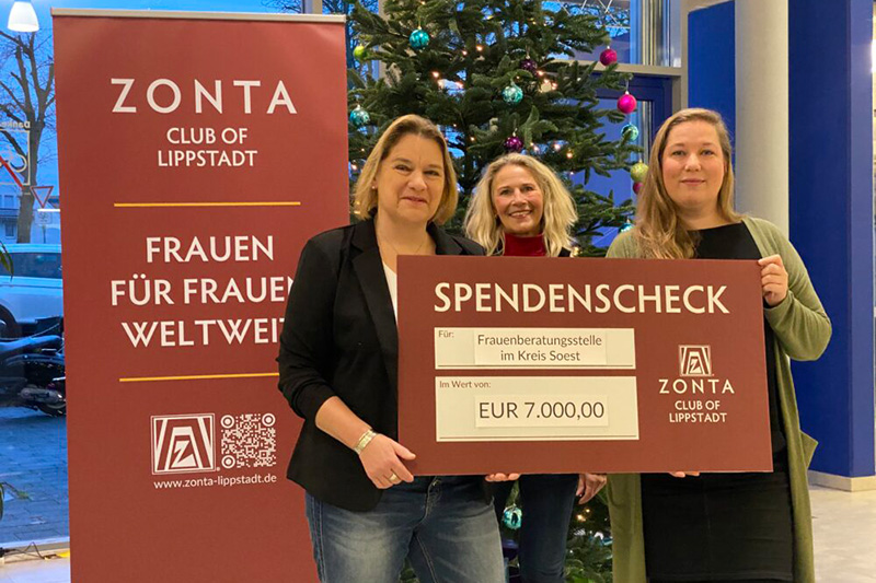 Im Rahmen des Altstadtlaufs 2024 des Zonta Clubs Lippstadt kam durch teilnehmende Läuferinnen und Läufer ein toller Geldbeitrag zusammen. Während der Veranstaltung hatten die Laufenden die ausliegende Spendenmatte zu überqueren. Das Projekt wurde aber auch durch zahlreiche Unternehmen als Sponsoren unterstützt. Lena Sauerland bedankte sich stellvertretend für die Frauenberatung Soest für die großzügige Spende.