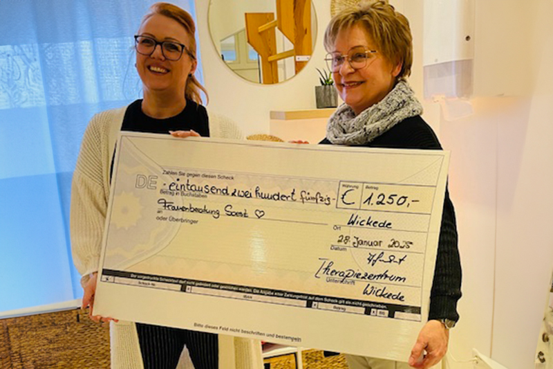Das Therapiezentrum Wickede sammelt in jedem Jahr mit der Aktion „Spenden statt Süßes“ Geldspenden für eine gemeinnützige Organisation. Sie bitten dann ihre Patient*innen auf das Schenken von Süßigkeiten für ihr Team zu verzichten und stattdessen lieber eine Geldspende für die auserwählte Organisation dazulassen. Diesmal entschied sich das Therapiezentrum für die FRAUENBERATUNG SOEST.
