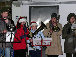 Hier startet traditionell die Kurrende ihren Weg von Haus zu Haus quer durch Esborn und Wengern. Trotz der Unwetterwarnung kamen die Bläser und erfreuten die Bewohnerinnen und Bewohner mit ihrer Musik.