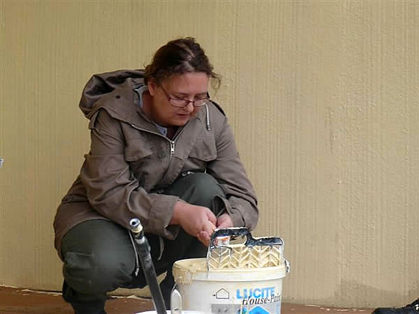 Den jungen Beschäftigten ist die Pflege eines Wartehäuschens bekannt. Sie strichen bereits vor ein paar Jahren das Häuschen an der Haltestelle „Transformator“ an der Esbornerstraße. Aktuell putzen und streichen Sabine Mayweg mit den Teilnehmenden Sonja Weitz, Martha Radwan und Jonas Leifermann sowie unterstützt durch „Bildungsbegleiter“ Oliver Riemer die beiden Wartehäuschen der Bushaltestellen „Transformator“. Sie beseitigen den Dreck und Schmutz nach dem starken Regen und die Beschmierungen an den Wänden.