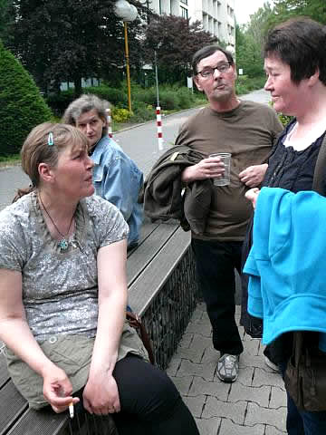 35 Bewohnerinnen und Bewohner, Mitarbeitende und ihre Familien, Bewohnerinnen und Bewohner der Evangelischen Stiftung Volmarstein lachten über seine gesungenen, gespielten, gelesenen Vorträge, in denen er Vorurteile über Menschen mit Behinderungen ironisch hinterfragt. Seine an Provokation grenzende und manchmal auch an Publikumsbeschimpfung erinnernden Äußerungen fand großen Anklang. Ein kleiner Teil des Publikums war peinlich berührt und forderten erklärende, beruhigende Gespräche ein.