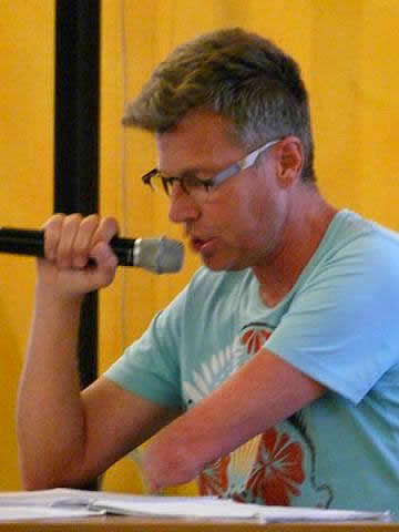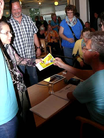 Ob alt oder jung, weiblich oder männlich, behindert oder nicht behindert, aus der Region oder darüber hinaus - Über 100 Menschen trafen sich am 3. Juni 2014, um sich Martin Fromme anzuhören, anzusehen und mitzuerleben. Martin Fromme beschreibt sich selbst als „Deutschlands einziger asymmetrischer Komiker“, als „Mann mit appen Arm“. Er ist der Autor des Buches „Besser Arm ab als arm dran“.