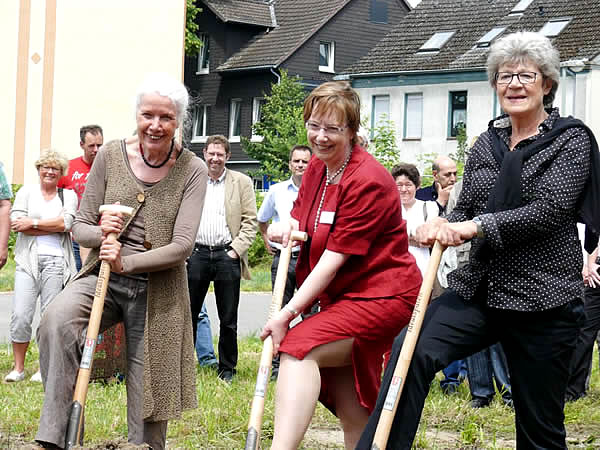 Bauvorhaben beginnen nach alter Tradition mit dem ersten Spatenstich. Mitte Juni 2014 fand dieser in der Schöntaler Str. 18-20 in Wetter statt. Mitglieder des Bewohnerinnenbeirates und des Werkstattrates, Mitarbeitende des Frauenheims Wengern der Evangelischen Frauenhilfe in Westfalen e.V. waren ebenso beim Spatenstich vertreten wie Vertreter der Stadt und des Kreises, Mitglieder des Bauauschusses und der Verwaltung der Evangelischen Frauenhilfe in Westfalen.