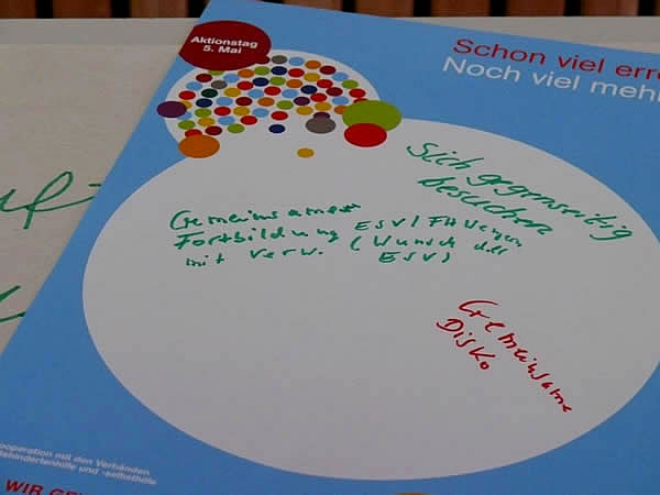 In einem Café der Inklusion wurde unter „schon viel erreicht“ genannt: Bürgerbus, Einsatz der Politiker, einzelne Flyer und Formulare in einfacher Sprache, Info-Broschüren über barrierefreies Einkaufen, Parken und Ärzte sowie die gemeinsame Fortbildung zur „inklusiven Verwaltung“.
