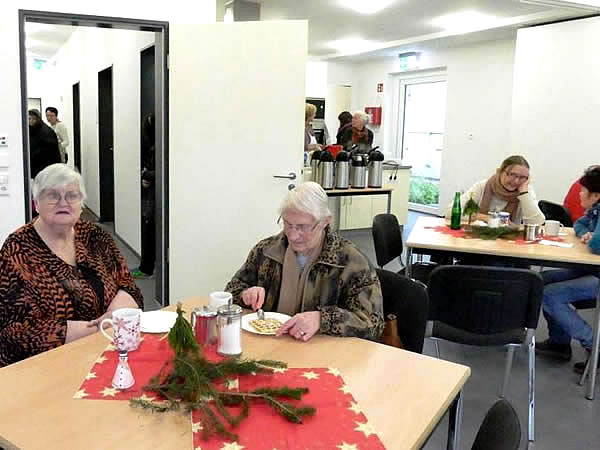 Bewohnerinnen und Bewohner sowie Mitarbeitende des neu bezogenen „Haus Schöntal“ in Wetter luden ihre neuen Nachbarinnen und Nachbarn am 3. Advent ein. Bei Waffeln mit Kaffee, Kakao und Kinderpunsch kamen sie miteinander ins Gespräch.