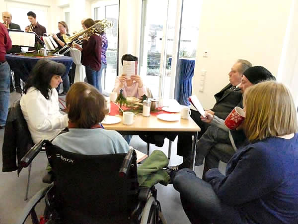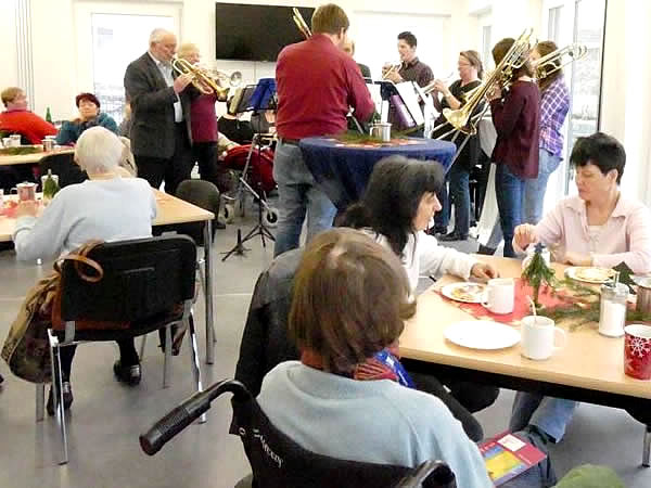 Neben der persönlichen Einladung an viele Nachbarn lockten der Posaunenchor Bochum-Gerthe und Frau Willam am Klavier mit ihrer Musik die Vorbeigehenden an. Sie halfen, die Barriere „in ein fremdes Haus zu gehen“ bei einigen abzubauen.