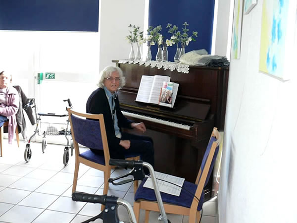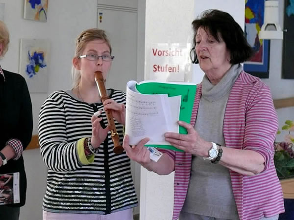 Musikalischen Einlagen kamen von den Bewohnerinnen Svenja Müller im Gesang, Rosemarie Kalthoff an der Zitter, Katherina Kroll mit der Flöte, Doris Pernau am Xylophon und Dorothea Knetsch am Klavier - alle unter Leitung von Bernadette Korbel.