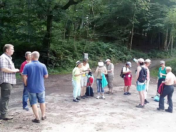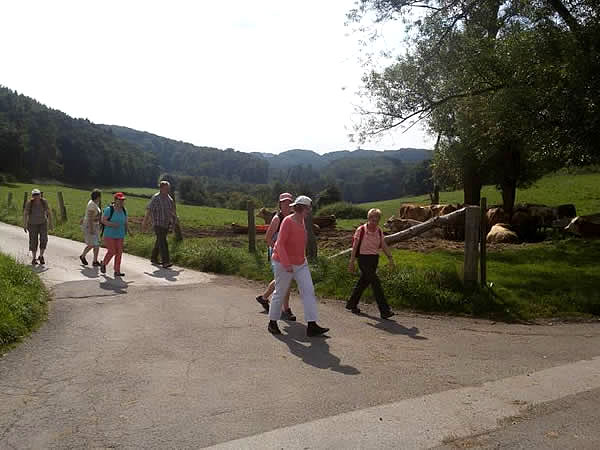 Da das Wetter zwar schön, aber schwül und warm war, wurde beschlossen, dass man durch den Wald wandern würde, um genügend Schatten zu haben. Also ging es vom Frauenheim zum „Bahnhof Albringhausen“ und zurück. Alle genossen die rund 1,5 stündige Wanderung mit mehreren kleinen Pausen.