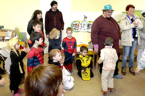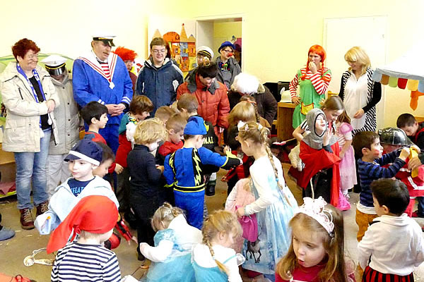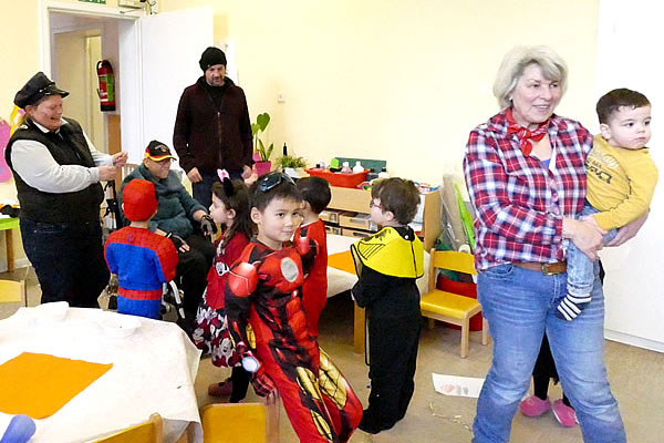 So war die Planung. Dann kam der Regen und der Umzug wurde kurzfristig abgesagt. „Was machen wir denn jetzt mit den Kamellen?“- „So viele können wir doch gar nicht essen!“ schallte es durch die Räume der Tagesstruktur. Also beschlossen die Bewohnerinnen, die Kinder im Kindergarten zu besuchen. Nach einem vorsichtigen, zaghaften Sich Annähern wurden die Kamellen geschmissen, von Allen wieder aufgesammelt, gemeinsam gelutscht. Alle hatten viel Spaß und viel Genuss dabei.