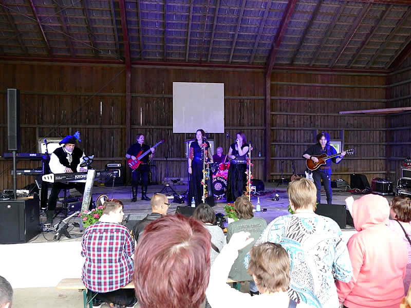 Bei der letzten Band – refresh–cover eiskalt – waren die Zuhörenden nicht mehr zu halten. Christine Weber, Gesang und Gitarre, Linda Forth, Bass, Jörg Jäger, Schlagzeug, Kevin Müller, Gesang und Gitarre, und Thorsten Hannemann, Gesang und Gitarre, gaben ihr Bestes. Ihre gecoverten Hits von Blues bis Rock'Roll, von AC/DC bis Westernhagen sangen, tanzten und spielten alle mit.