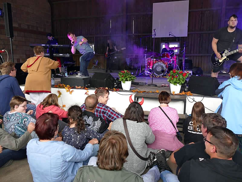 Die Band BOP spielen in wechselnder Besetzung schon seit vielen Jahren zusammen. Die Allround-Musiker üben jede Woche im alten Kälberstall. Zu ihrem Repertoire gehören eigene und fremde Lieder. Zur Band gehören Konstantin Held, Gesang und Keyboard, Julian Fleischer, Gitarre, Kevin Posner, Schlagzeug und Gesang, Vebi Beciri, Bongos, Thorsten Hannemann und Ivo Wiehe, Gitarre und Bandleader. BOP eröffnete das Konzert und erntete große Begeisterung.