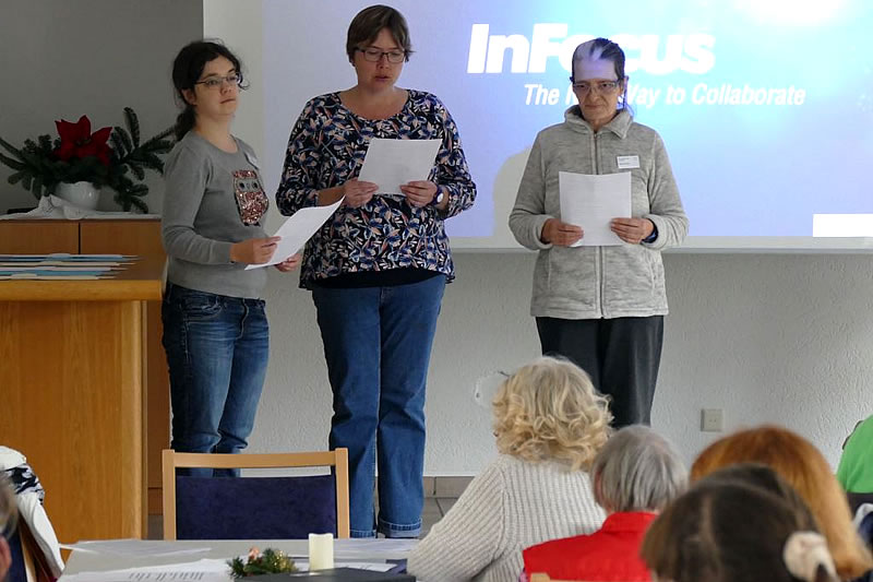 „Vier Berichte auf einmal!“ „Das hält doch keiner aus!“ „Mann, müssen die arbeiten!“ So und ähnlich äußerten sich die Teilnehmenden an der Vollversammlung des Frauenheim Wengern. Gemeinsam hatten der Beirat der Bewohnerinnen und Klientinnen, der Werkstattrat, die Frauenbeauftragten Arbeit und Wohnen und die Heimleitung zu der Vollversammlung am 11. Dezember eingeladen.