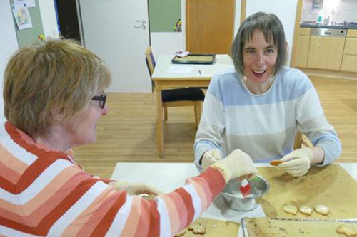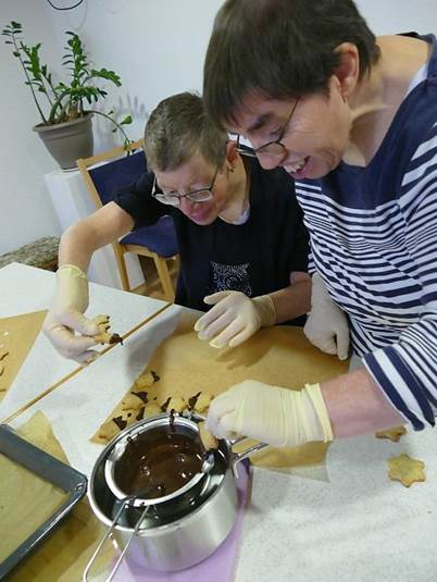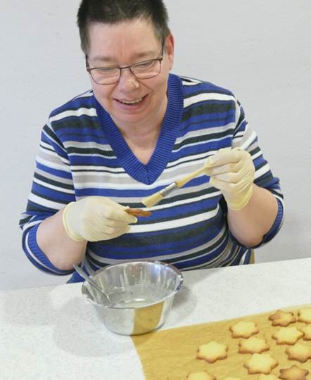 In eine vorweihnachtliche Adventsbäckerei mit duftenden Plätzchen hat sich das Cafe Fritsi Ende November verwandelt. Über den Tag verteilt kamen 30 backfreudige Bewohnerinnen und Bewohner des Frauenheim Wengern in die „Backstube“, um für ihre Wohngruppen Plätzchen zu backen.
