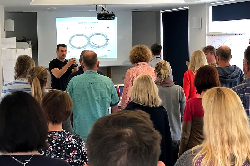 Beide stellten in einem Fachvortrag und verschiedenen Workshops das Konzept des Systemischen Aggressions-Managements vor, das auf praktischen Erfahrungen insbesondere im FRAUENHEIM WENGERN und in anderen Institutionen zur Betreuung von geistig und psychisch behinderten Menschen beruht und dessen Inhalte sofort umsetzbar sind.