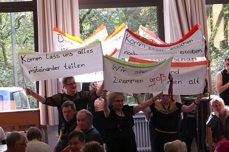 Altbewährtes wie Tanz mit Karaoke-Einlagen, Dosen werfen, Modenschau, Currywurst im Brötchen fanden beispielsweise beim Bereichsfest „Außenwohnen“ großen Anklang. Rund 80 Personen - Bewohnerinnen und Bewohner im Außenwohnen und die Klientinnen und Klienten des ambulanten Dienstes NAOMI - feierten gemeinsam.