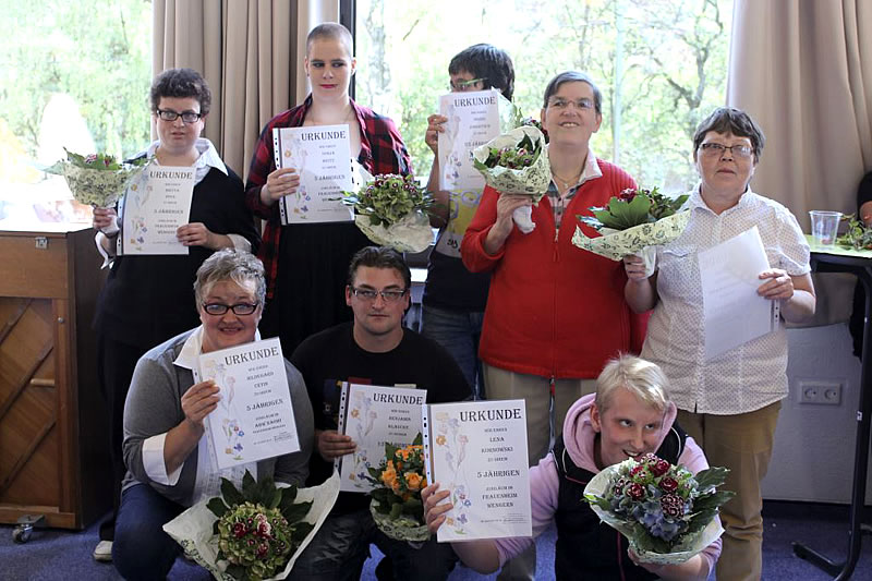 Regelmäßig alle zwei Jahre feiern Bewohnerinnen, Klientinnen, Mitarbeitende in ihren Bereichen Feste. Der Höhepunkt eines jeden Bereichsfestes ist und bleibt die Überreichung der „Treue“-Urkunde. Ob Bereichsfest oder Ausflug - wichtig für alle Veranstaltungen ist: „Wir machen etwas gemeinsam!“