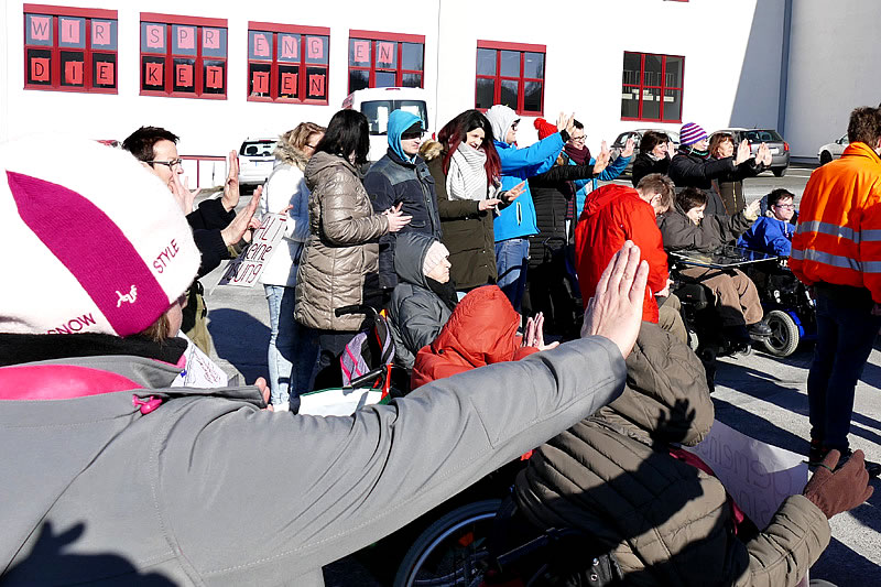 „Macht alle mit! Lasst uns am 14. Februar die Ketten sprengen! Lasst uns tanzen für eine gewaltfreie Welt, für die Gleichberechtigung!“ So forderten Astrid Tremblau und Svenja Müller, die Frauenbeauftragte der Werkstatt für behinderte Menschen Frauenheim Wengern und ihre Stellvertreterin, zusammen mit der Frauenbeauftragten Wohnen Martina Hauser die weiblichen Beschäftigten der Werkstatt, die Bewohnerinnen des Frauenheims und Klientinnen der ambulanten Dienste NAOMI auf, am „One billion rising – Tag“ gegen die Gewalt gegen Frauen und gegen die Unterdrückung der Frauen zu demonstrieren.