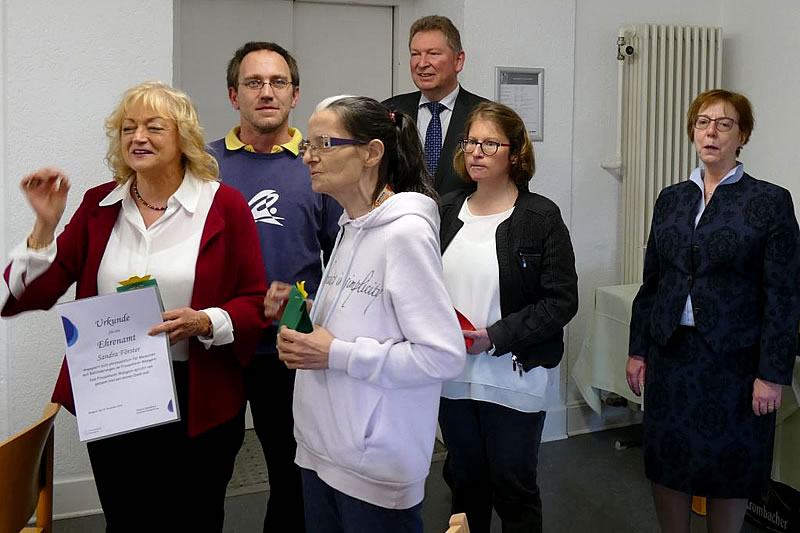 Die Familien- und Krankenpflege bedankte sich mit einer Urkunde bei David Braukhoff, der neben seiner Beschäftigung in der WfbM noch einmal in der Woche sich um alte Männer und Frauen in der Tagespflege in Wengern kümmert.