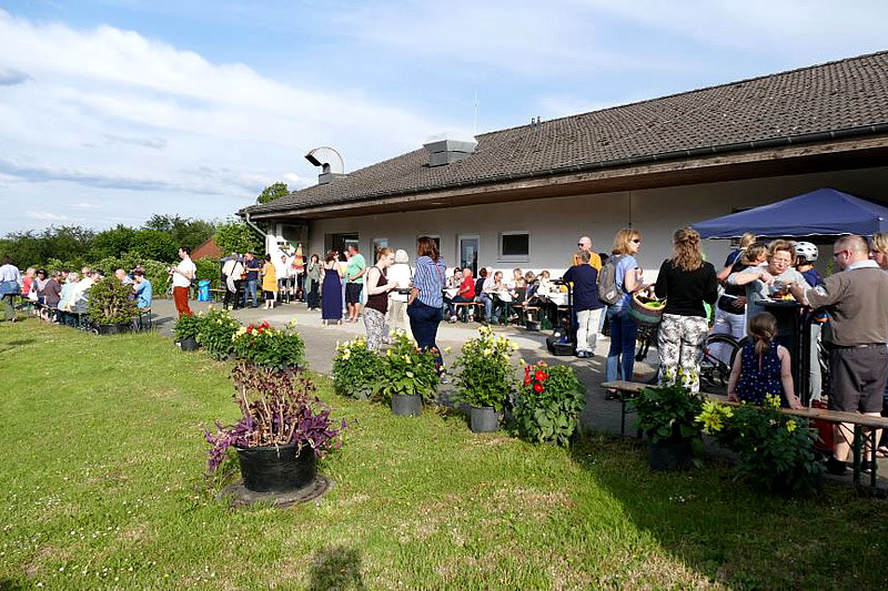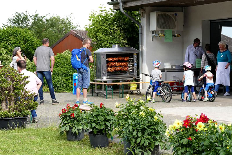 Danach genossen zahlreiche Gäste die Möglichkeit bei Grillhähnchen aus eigener Aufzucht sowie unterschiedlichen Saftschorlen oder einem Gläschen Wein den Abend gemütlich ausklingen zu lassen / eine gelungene Umsetzung des Mottos „Genießen und verweilen“.