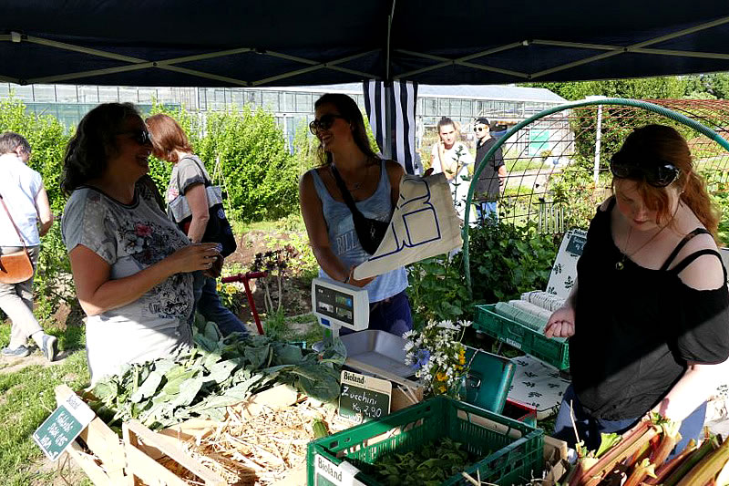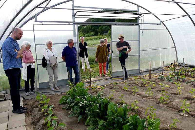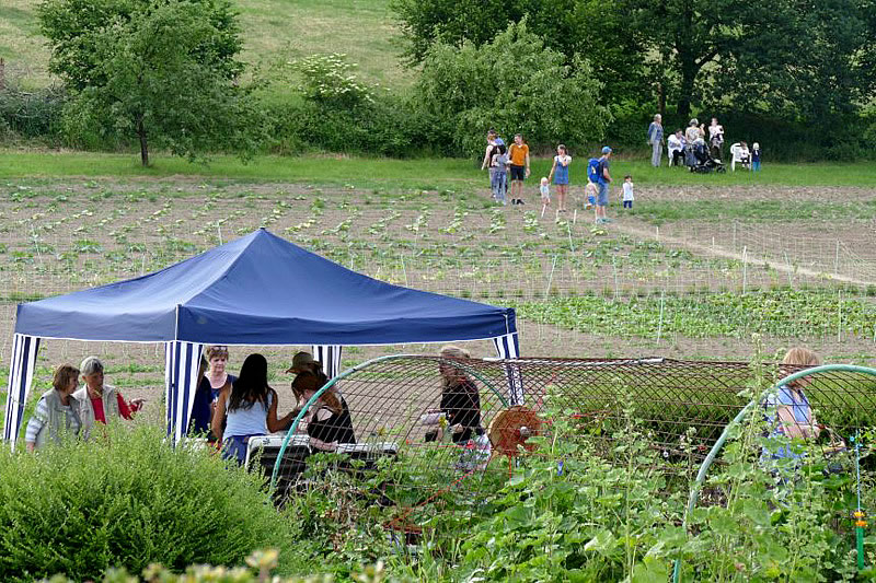 An einem herrlichen Sommerabend bestand die Möglichkeit sich bei Führungen durch Gartenbau und Bauernhof über die Arbeitsweise nach Bioland Richtlinien zu informieren. Viele Fragen wurden von den Fachkräften beantwortet und wer dann noch wollte, pflückte sich die frischen Erdbeeren direkt vom Feld. Andere kauften frisches Gemüse am Verkaufstand.