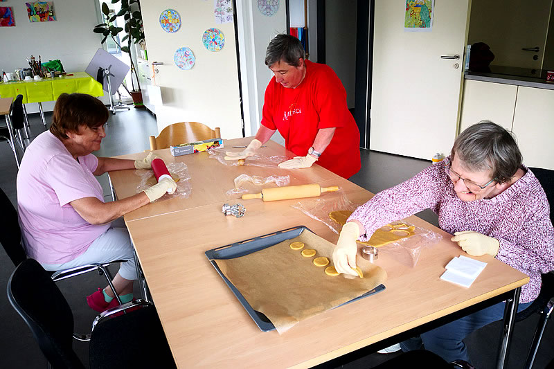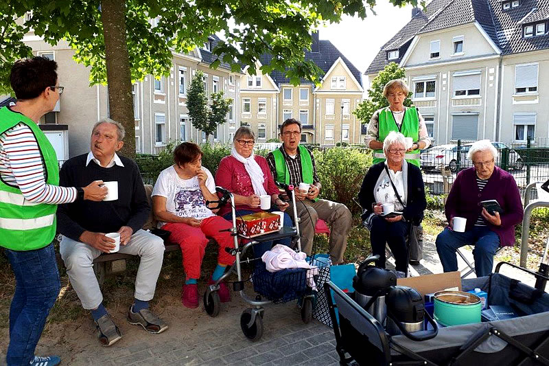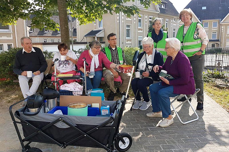Am 17.7.2019 startete das Projekt „Stadtteil-Kümmerer“. Zuvor spendete die WSG – Wohnstättengenossenschaft - den Bollerwagen, die ESV die Kaffee-Tassen, Simone Bendereit und Kristine Fischer den Flyer (Grafik und Druckkosten), das FRAUENHEIM die Kekse. Natürlich Kekse, die in Handarbeit mit viel Liebe in der Tagesstruktur gebacken wurden.