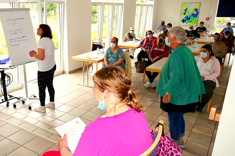 „Wir sind GEMEINSAM STARK!“ mit dem Motto der Frauengruppe endeten laut-stark alle fünf Veranstaltungen. „Fünf Veranstaltungen: drei am Böllberg, eine im Schöntal, eine in Wengern – das soll uns mal eine nachmachen! – Jetzt müssten alle Frauen gut vorbereitet sein. Sie können jetzt trainieren, keine Gewalt zu erfahren. ABER, wenn sie passiert, wie sie Hilfe bekommen.“ So lautete die Auswertung der Vorstellung des Leitfadens „Gewaltfrei – im Frauenheim Wengern“. Er ist ein Anti-Gewalt-Leitfaden von Frauen mit Behinderung für Frauen mit Behinderung