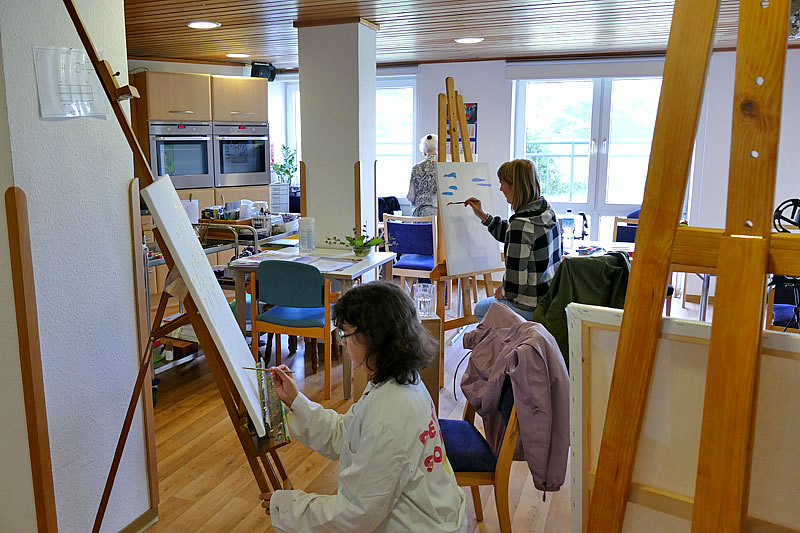 Sowohl bei der Mal-Sommer-Akademie, bei Gartenarbeiten und beim Backen, als auch beim Gedächtnis-Training, der Seifenherstellung und beim Kochen erlebten die Gäste die Tagesstruktur als Möglichkeit, Ressourcen zu fördern, den Tag zu strukturieren und sich sinnvoll, aber ohne ‚Hürden‘, zu beschäftigen.