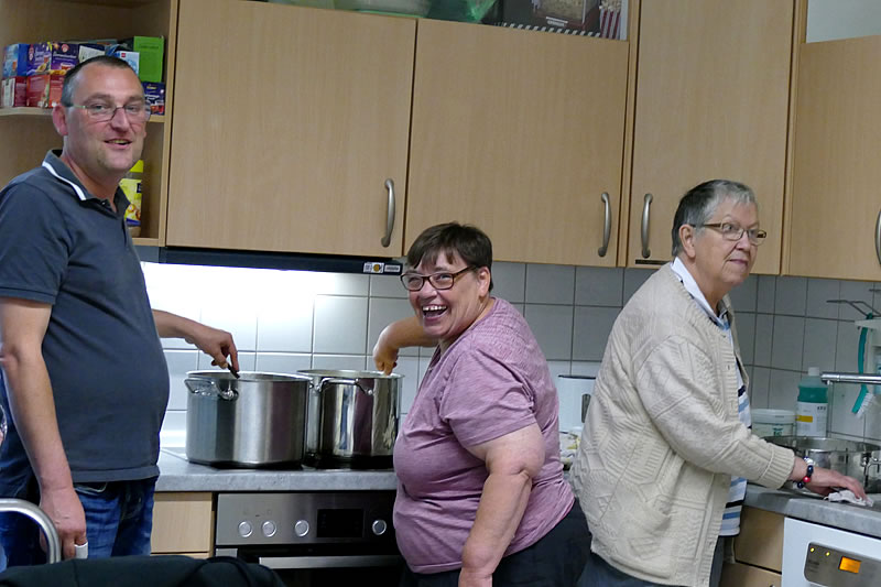 „Tagesstrukturierende Angebote direkt um die Ecke, fußläufig zu erreichen, zusammen mit den Angeboten des Betreuten Wohnens sorgen dafür, dass ich noch nicht ins Altenheim ziehen muss“, erzählt eine der Frauen, die Tagesstrukturangebote nutzt. „Jeden Morgen habe ich einen Grund aufzustehen und mich anzuziehen: Freunde warten auf mich zum gemeinsamen Essen und Klönen“, stellt ein anderer heraus und die Kochkollegin meint augenzwinkernd: „Außerdem fühle ich mich hier wohl und habe Spaß.“