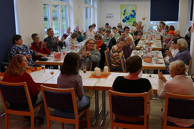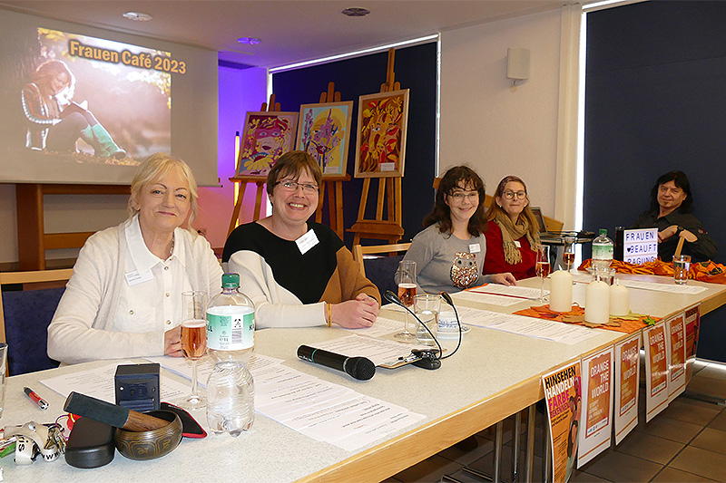 Zum Start der „Orange Days“ veranstalteten die Frauenbeauftragen im FRAUENHEIM WENGERN das 8. Frauencafe. Die Cafeteria war bis auf den letzten Platz gefüllt.
