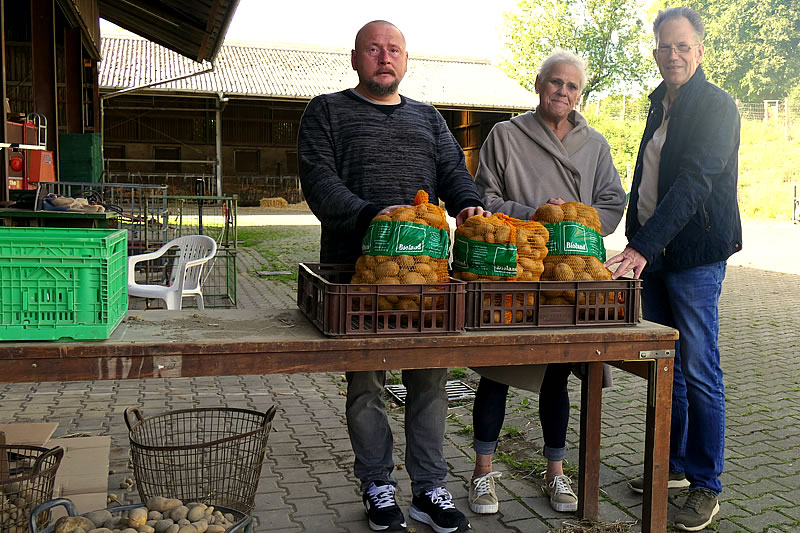 Werkstattleiter Thomas Schiebille überreichte die Kartoffelspende an Barbara Holland und Robert Sarnack, die erfreut meinten: „Oh sogar Bio-Kartoffeln, da werden sich aber viele besonders freuen!“