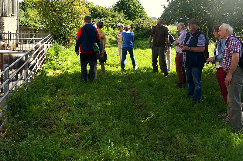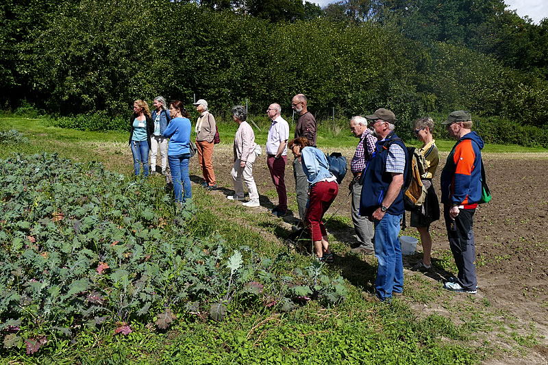 13 sehr interessierte Menschen ließen sich durch Sonja Breuker (Gartenbau) und Jan Stauber (Landwirtschaft) die vielen Details der Tierhaltung sowie des Gemüse- und Obstanbaus nach Bioland-Richtlinien erklären. Aufgrund des großen Interesses fand Ende August ein zweiter Führungstermin durch den Grünen Bereich der WfbM FRAUENHEIM WENGERN statt. Die Nabu EN hatte dazu eingeladen.