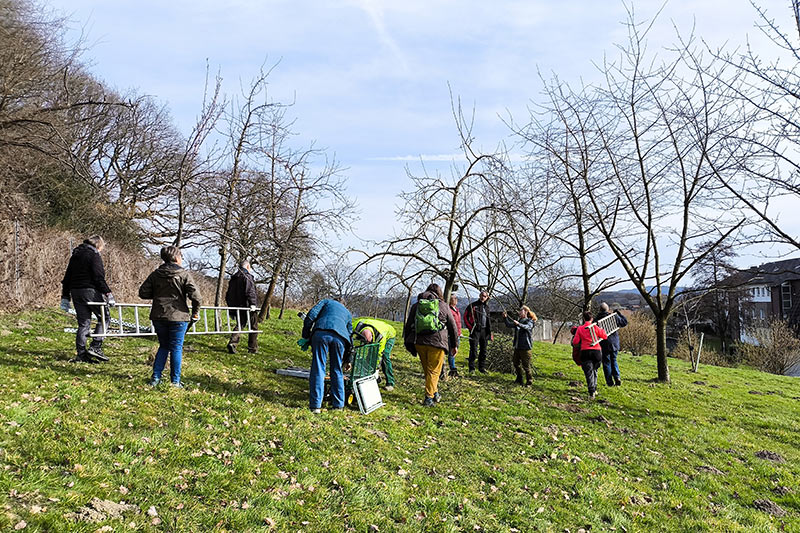 Nach den langen, frostigen Wintertagen tummelten sich im Februar im Garten des FRAUENHEIM WENGERN nicht nur die ersten Vögel. Auch Nachbarn, Mitarbeitende und Menschen aus der Umgebung waren mit der Gärtnerin auf dem Gelände zu finden – denn es stand der alljährliche Obstbaumschnitt an. Unter fachkundiger Anleitung wurden die Obstbäume sorgfältig beschnitten, um deren Gesundheit und Wachstum zu fördern.