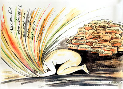 Johannes 8, 7 "Wer von Euch ohne Sünde ist, der werfe den ersten Stein auf sie!"