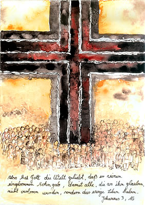 "Also hat Gott die Welt geliebt, dass er seinen eingeborenen Sohn gab, damit alle, die an ihn glauben, nicht verloren werden, sondern das ewige Leben haben."
