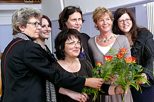 „Kein Grund zu feiern“ - 20 Jahre Frauenhaus Soest (Mai 2010) ![]() Dank und Glückwünsche für ihr 20-jähriges Engagement nahmen Pfarrerin Angelika Weigt-Blätgen und das Frauenhaus-Team Sonja Heyna, Marlene Kiefer, Ulrike Dustmann, Doris Brunnberg und Citi Jeuring (v.l.n.r.) entgegen. „Es ist bitter und empörend, dass es das Frauenhaus geben muss. Pfarrerin Angelika Weigt-Blätgen hatte das Fest eröffnet mit dem Spruch des Propheten Sacharja: „Nicht mit Macht und Gewalt, sondern durch unsere Geistkraft soll es geschehen“. Bundesweit und so auch im Kreis Soest sei jede vierte Frau von Gewalt betroffen. Das Frauenhaus aber, so Weigt-Blätgen, setze dagegen die Vision, dass eine Welt ohne Gewalt möglich sei. So nahmen das Team des Frauenhauses und die Trägerin gute Wünsche von Polizei, Ärzten, Rechtsanwälten, Lehrern, Erziehern und Vertreterinnen und Vertreter aus Politik, Verwaltung, Kirche und Wirtschaft entgegen, die ihre Wertschätzung zeigten. „In der Bewegung bleiben“ lautete das Motto des Frauenhauses Soest, unter das die Einrichtung der Evangelischen Frauenhilfe in Westfalen e.V. zu seinem 20-jährigen Bestehen am 28. Mai 2010 in die Tagungsstätte Soest einlud. Nach den Grußworten von Christel Schmidt (Vorsitzende der Trägerin), Maria Loheide (Diakonie Rheinland-Westfalen-Lippe), Irmgard Soldat (stellvertretende Landrätin des Kreises Soest) und Marita Stratmann (stellvertretende Bürgermeisterin der Stadt Soest) stand im Mittelpunkt des Empfangs der Vortrag von der Frankfurter Journalistin und Politologin Dr. Antje Schrupp. Begleitet wurde das Festprogramm mit den 120 Gästen von den beiden Musikerinnen ANA & ANDA, die ebenfalls beschlossen haben, das Schweigen zu brechen - in künstlerischer Hinsicht. |