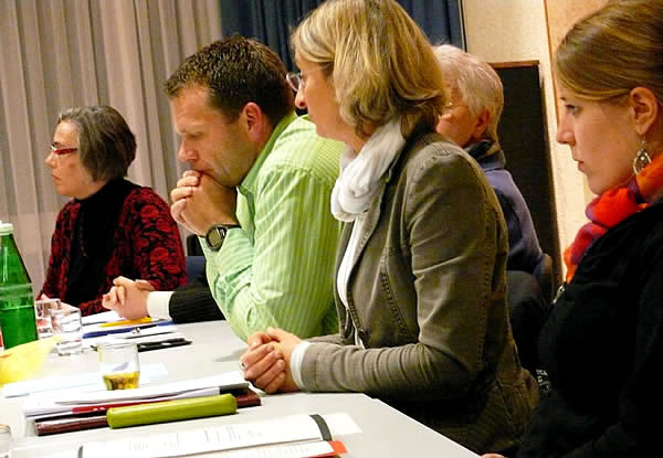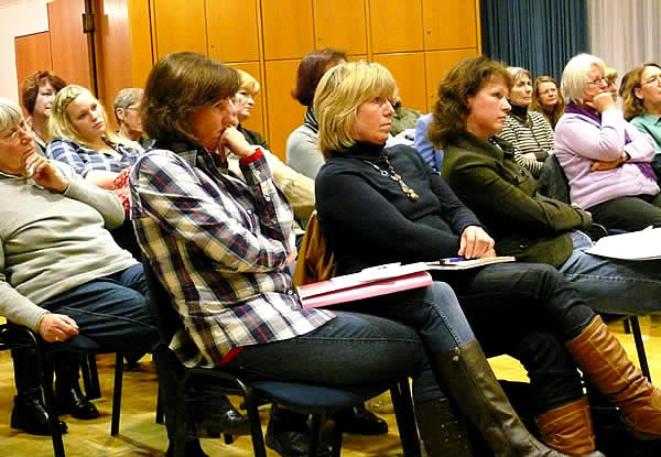 Michael Remmert von der Kreispolizeibehörde Soest und Karola Born vom Gesundheitsamt des Kreises Soest verdeutlichten die Situation der Prostituierten im Kreis Soest den ca. 30 anwesenden Gästen der Veranstaltung. Ca. 400 bis 500 Prostituierte im Jahr, die ungefähr zu 80 % aus Osteuropa kommen, arbeiten in sieben Bordellbetrieben und 13 Wohnungen im Kreis Soest. Sie melden ein Gewerbe an, sind als Selbständige tätig und führen durch eine Pauschalbesteuerung zu einem jährlichen Steueraufkommen im Kreis Soest von 100.000 bis 120.000 € im Jahr. Die Prostituierten wechseln häufig den Ort, daher sprechen die Fachleute von „Wanderprostituierten“ und „Terminwohnungen“ - im Kreis Soest sind im Jahresdurchschnitt ca. 110 selbständige Prostituierte tätig. Die Kreispolizei führt ca. ein Mal monatlich in jedem Betrieb Kontrollen durch.