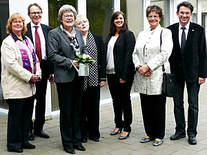 Carolin Glöckle und ihr Team, die das Haus gebaut haben, bedankten sich bei der Evangelischen Frauenhilfe in Westfalen e.V. für die gute und partnerschaftliche Zusammenarbeit. Paul Linnemann, Leiter des Fachseminars für Altenpflege in Soest und Hamm, die ebenfalls in Trägerschaft der Evangelischen Frauenhilfe in Westfalen e.V. sind, meinte, immer neue Seniorenheime lieferten nicht die richtige Antwort auf den demografischen Wandel. Das neue Hanse-Zentrum - eingebettet in das Wohnviertel, dem Soester Hanse-Viertel - könne aber ein Anfang einer Zeit sein, in der das Alt-Werden und das Alt-Sein wieder ganz selbstverständlich zur Gesellschaft gehören. „Früher war es ganz normal, dass Jung und Alt gemeinsam unter einem Dach gelebt habe, da wollen wir wieder hin“, sagte Edna Künne, Leiterin der drei Altenhilfe-Einrichtungen des Landesverbandes. Das Hanse-Zentrum solle Teil der Nachbarschaft werden, die ersten Studenten der benachbarten Fachhochschule hätten bereits vorbeigeschaut. Hier sei reichlich Potential für weitere Zusammenarbeit, so Künne.