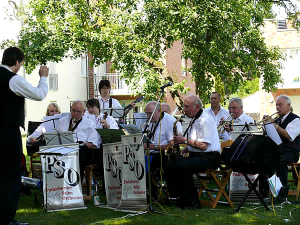 Unter dem Motto "Musik im Park" sorgte das Paderborner-Salon-Orchester für eine beschwingte Stimmung und spielte mit Musik aus der guten alten Zeit zum Tanz und Mitsingen auf.