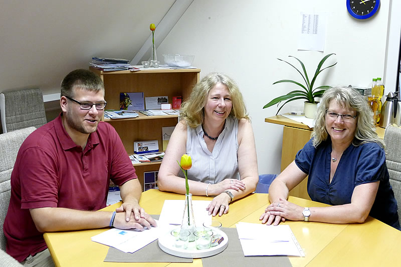 Antje Ulbrich (Mitte) leitet seit November des vergangenen Jahres das Ambulant Betreute Wohnen der Evangelischen Frauenhilfe in Westfalen. Sie steht den 24 Mitarbeitenden des Dienstes für Menschen mit psychischen Behinderungen, hier Kevin Seegmüller und Petra Garcia, mit Rat und Tat zur Seite.