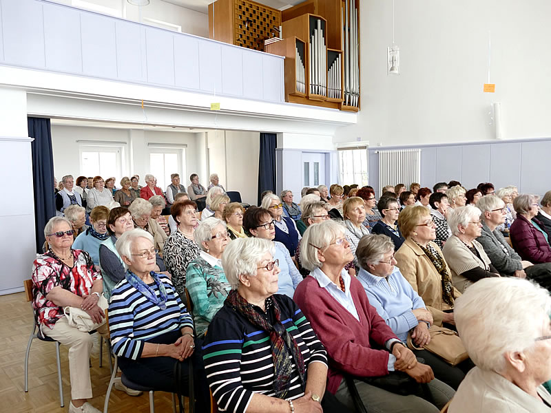 Nach der Begrüßung und einem kurzen Impuls durch die Vorsitzende Inge Schnittker (Hagen) bzw. durch die stellvertretende Vorsitzende Erika Denker (Siegen) erlebten die Anwesenden „Die Apostel Gottes: Frauen der Reformation“, einen einstündigen Hörgenuss von Jessica Burri. In diesem Programm werden drei besonders mutige Frauen der Reformation präsentiert. Sie hatten alle drei Streit per Brief mit Männern, die viel zu verlieren hatten. Auszüge aus ihren Briefwechseln werden vorgetragen sowie Kirchenlieder der Zeit. Nach dem Mittagessen sangen die Frauen im Offenen Singen alte und neue Freiheitslieder, tauschten sich in Workshops aus oder erkundeten das Gelände am Feldmühlenweg. Zum Abschluss feierten sie einen Gottesdienst mit den Pfarrerinnen Lindtraut Belthle-Drury, Birgit Reiche und Angelika Weigt-Blätgen.