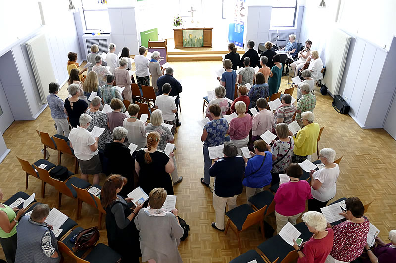 Bei den anschließenden Kaffeegesprächen ließen sich die Frauen verlocken, sich weiter zu informieren und zu vernetzen. Im abschließenden anderthalbstündigen Mitmachkonzert mit Bea Nyga wurde keine Stimme geschont. Evergreens und Hits der letzten Weltgebetstage wurden gekonnt von der Kölner Musikerin in Szene gesetzt, so dass die Gäste nicht zu halten waren und kräftig mitsangen.