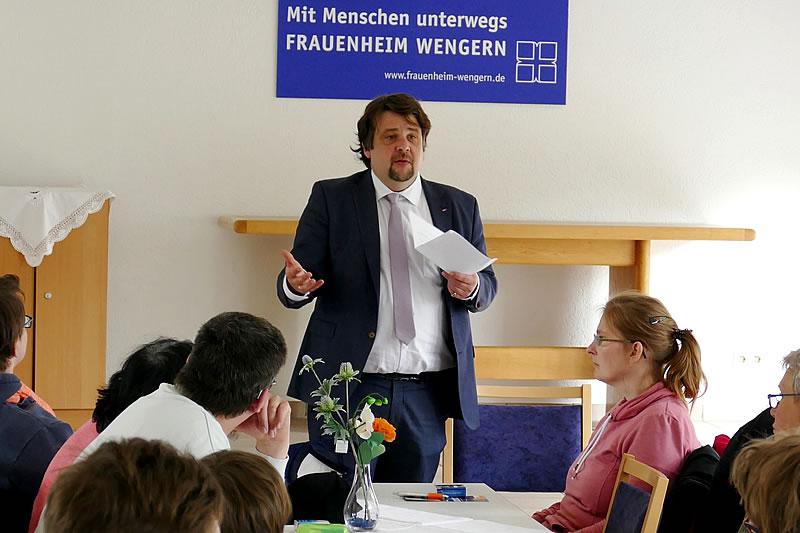 Europa ist sein Thema. Dass es immer mehr Extremisten von links wie von rechts im Europaparlament gibt. Dass aus seiner Sicht der Dinge, Europa in der Außenpolitik und der Sicherheit weiter zusammenarbeiten muss. Dass es Dinge gibt, die nun wirklich nicht über Ländergrenzen hinweg geregelt werden müssen. „Nicht jede Aufgabe in Europa ist eine Aufgabe für Europa“, bringt es Dennis Radtke (MdEP, CDU) auf dem Punkt. Der gebürtige Wattenscheider stellte sich am 8. Mai den Fragen im Gesprächsforum „Inklusion und Teilhabe“ im FRAUENHEIM WENGERN. Mehr als 30 Frauen und Männer waren gekommen.