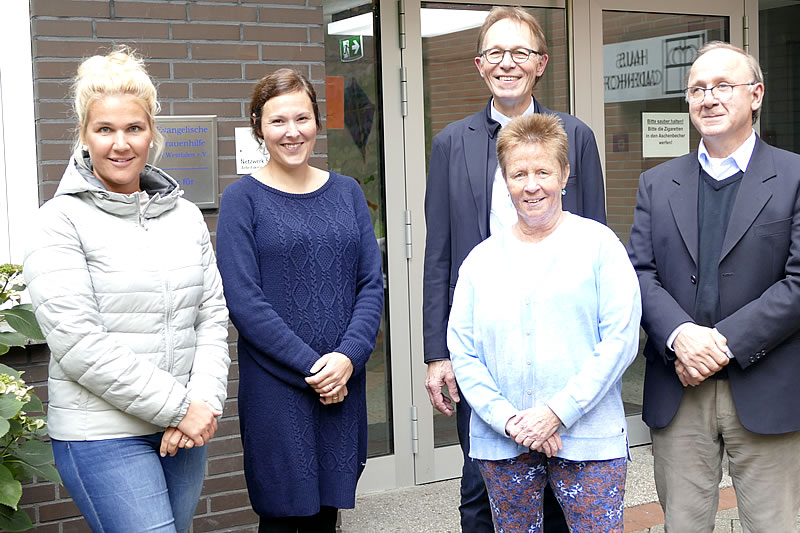 Das Fachteam der Bildungs-Institute für Pflegeberufe – Jennifer Monser, Andrea Wiemann, Luise Finken, Paul Linnemann und Bogdan Labanski (v.l.) - sehen zuversichtlich ins neue Jahrzehnt. Die Umsetzung der Generalistik führt nun nach 30 Jahren auch zur Umbenennung der Schule in „Bildungs-Institut für Pflegeberufe“ am Standort Hamm wie auch in Soest.
