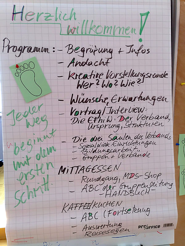 Die anschließende Arbeit mit dem „Handbuch für Gruppenleiterinnen“, in dem es von Satzung über Andachten, Finanzen, gesetzliche Regelungen in der Gruppenarbeit, Tipps zur Öffentlichkeitsarbeit und Ehrenamt nahezu alles zu finden gibt, wurde interaktiv gestaltet. Die Frauen hatten Gelegenheit zu fragen, brachten sich selbstbewusst in die Impulsvorträge ein. Nach einem Rückblick auf die platzierten bunten Fußabdrücke waren sich alle einig: „Wir kommen gerne im Mai wieder!“