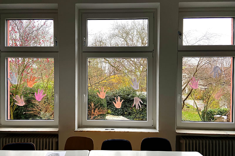 GEGEN GEWALT AN FRAUEN – die angehenden Pflegefachkräfte, die derzeit die Theorie im Soester Bildungs-Institut für Pflegeberufe absolvieren, zeigen aktiv, dass sie gegen Gewalt an Frauen sind. Sie beteiligen sich an der landesweiten Aktionswoche, indem sie die STOP Hand in die Fenster der Klassenräume geklebt haben.