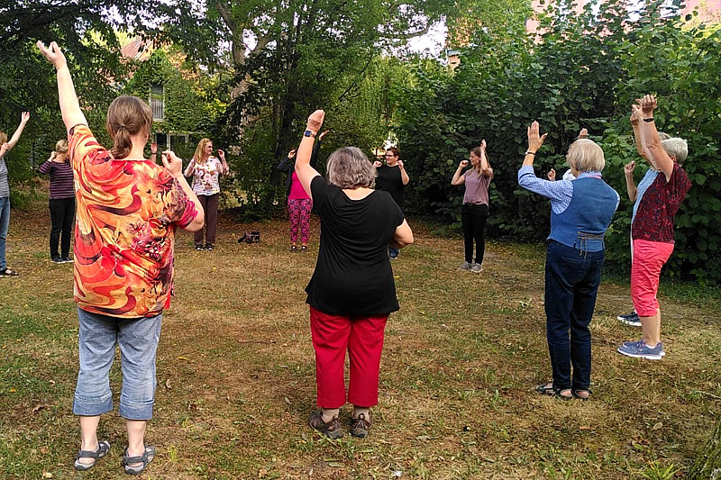 Die meisten der 17 Teilnehmenden haben die dreimodulige Ausbildung zum Zertifikat als Ganzheitliche Gedächtnistrainer*in bereits absolviert. Die Gültigkeit des Zertifikats wird durch die Teilnahme an der Veranstaltung der Evangelischen Frauenhilfe in Westfalen verlängert. Die Frauen und Männer sind begeistert – auch die, die erst mal „schnuppern“ wollen. Viele Übungen sind dabei; die Impulsreferate zu Anatomie geben den nötigen Hintergrund.
