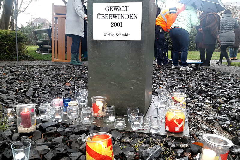 Birgit Reiche, Leitende Pfarrerin der Evangelischen Frauenhilfe in Westfalen, hielt das Friedensgebet für die Ukraine in der Mittagszeit Anfang April am „Mahnmal Gewalt überwinden“. Mitarbeitende aus den Arbeitsbereichen des Verbandes und weitere Interessierte entzündeten Kerzen als Friedens- und Hoffnungslichter.