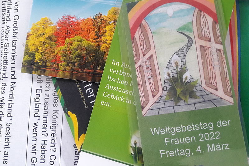 350 Taschen WGT to go waren bzw. sind es in diesem Jahr beim Bezirksverband der Evangelischen Frauenhilfen Recklinghausen. Earl Grey und Tütchen porridge in verschiedenen Geschmacksrichtungen kamen dieses Mal zu den Ordnungen, Karten, Denkanstöße und den Länderheften. Infomaterial zum WGT kam auch dazu. Gott sei Dank halfen alle sieben Frauen des Vorstandes. Neben WGT to go gibt es fast überall Präsenzgottesdienste, allerdings gibt es nirgendwo hinterher eine Zusammenkunft.